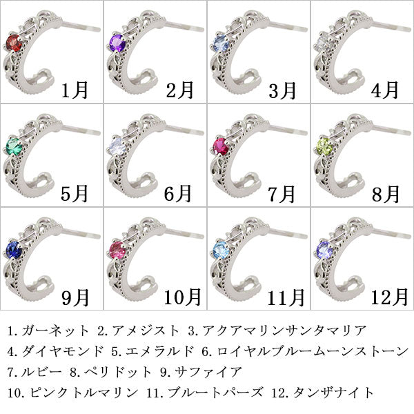 誕生石12石を使用した、唐草(アラベスク)モチーフのメンズC型フープピアスです。繊細で美しい唐草模様に天然石が煌めく。大人の男性の魅力を引き出してくれるおしゃれアイテムです。ペアピアスとしてお揃いにしてもおしゃれな商品です。