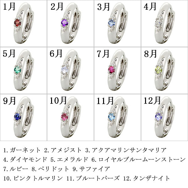 誕生石12石を使用した、レディースフープピアスです。大人気のフープピアスに誕生石を合わせた、長く愛せるシンプルなデザインで贈り物としても喜ばれます。ユニセックスデザインですのでメンズにもオススメですし、ペアピアスとして片耳ずつお揃いにしてもおしゃれな商品です。