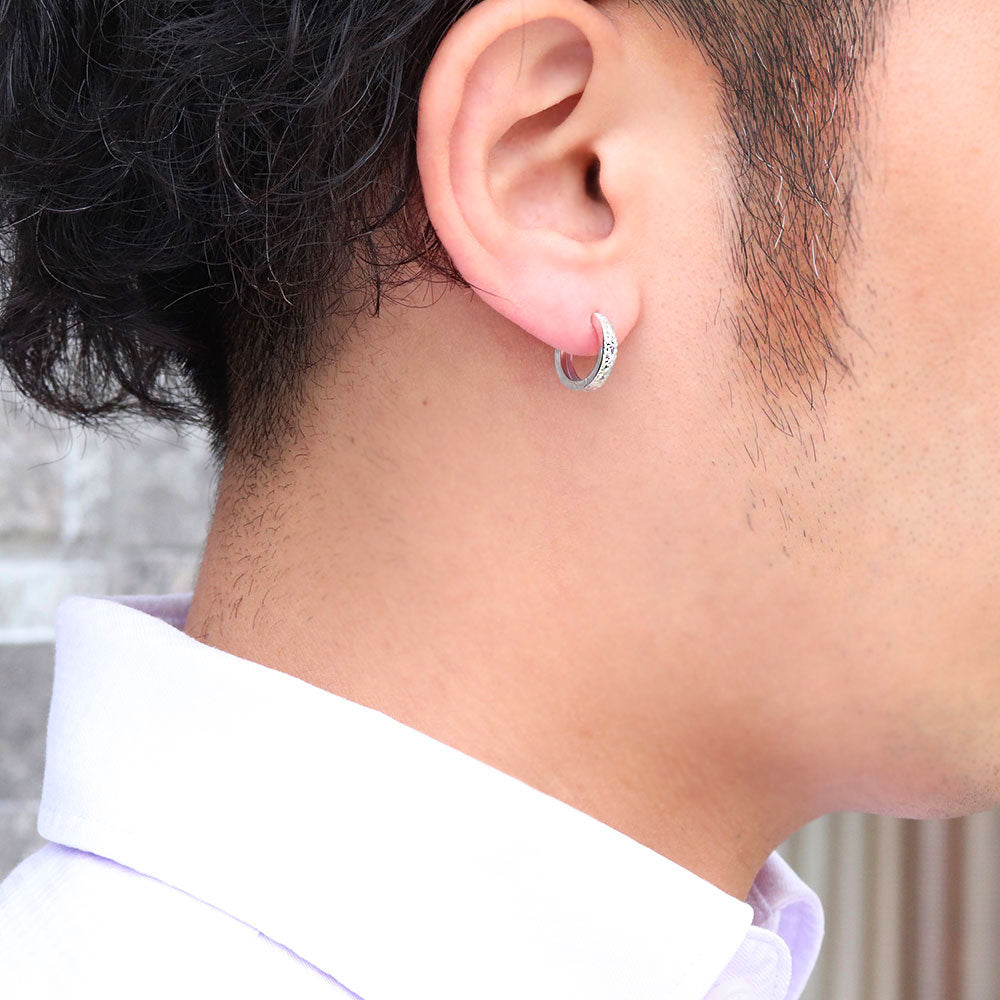 誕生石12石を使用した、メンズフープピアスです。ハワイアンジュエリーとは一味違う洋彫りジュエリー。職人が一つ一つ丁寧に仕上げたオリジナルのデザイン。繊細で美しい彫り模様に天然石が煌めき、 大人の魅力が際立つピアスに仕上がっています。ペアピアスとしてお揃いにしてもおしゃれな商品です。