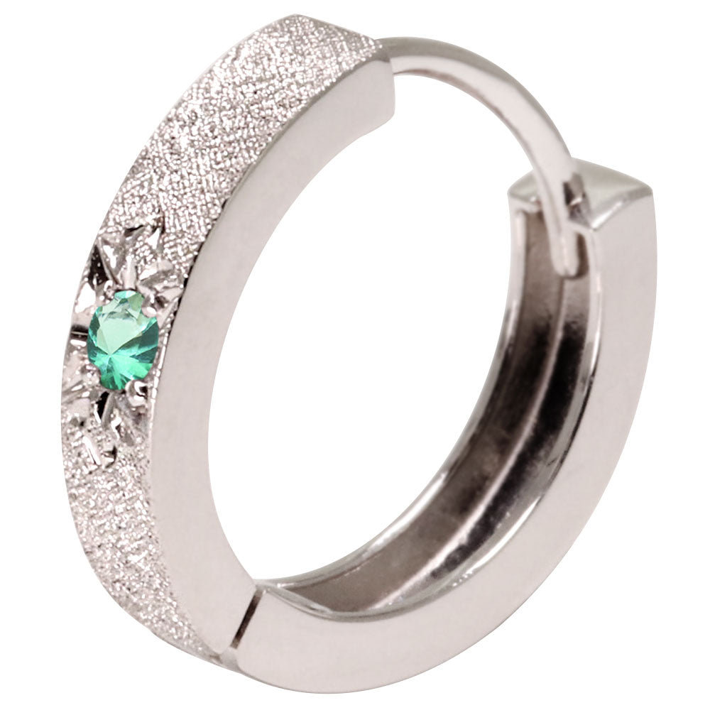 フープピアス メンズ 10金 18金 プラチナ シルバ 選べる誕生石 あらし 中折れ式 天然石 洋彫り 片耳 ピアス 彫り 誕生石