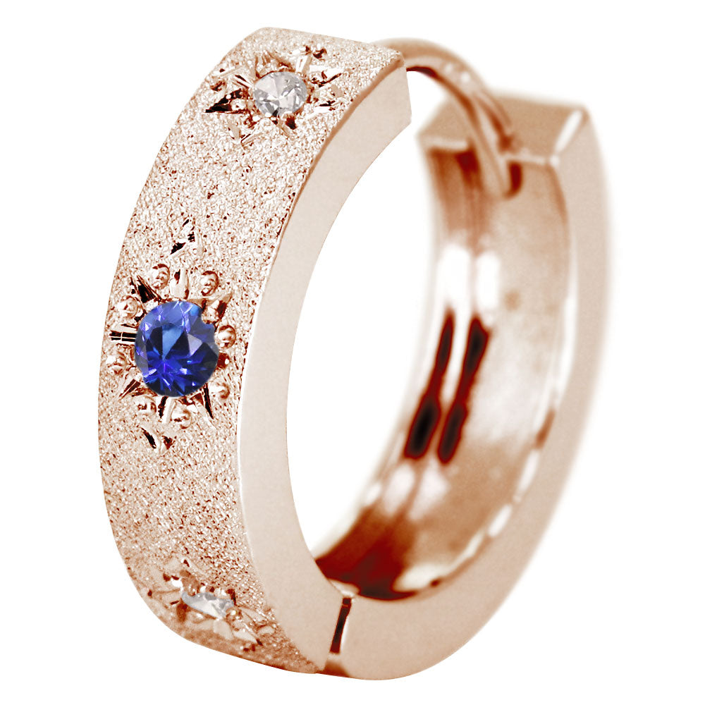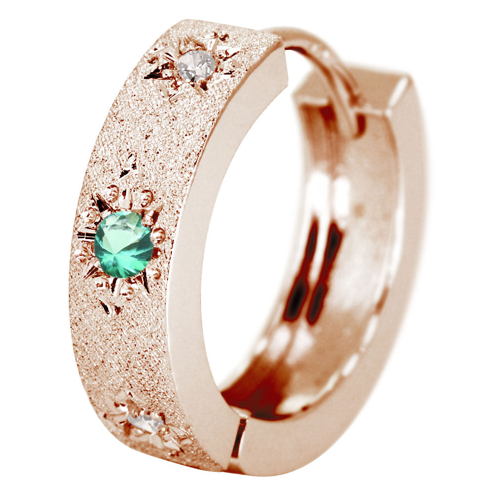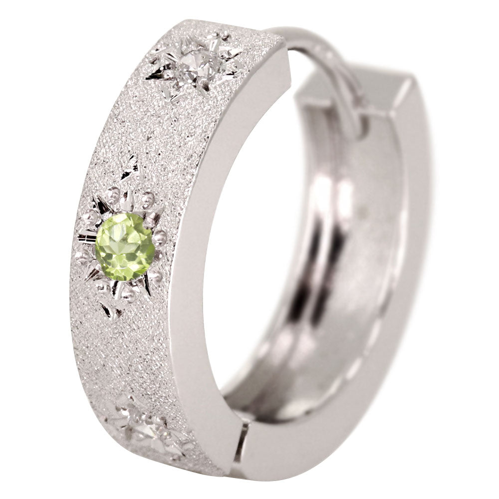 フープピアス メンズ ピアス 選べる誕生石 中折れ フープ 洋彫り 片耳 キャッチレス 彫り 天然石 k10 k18 pt900 sv925