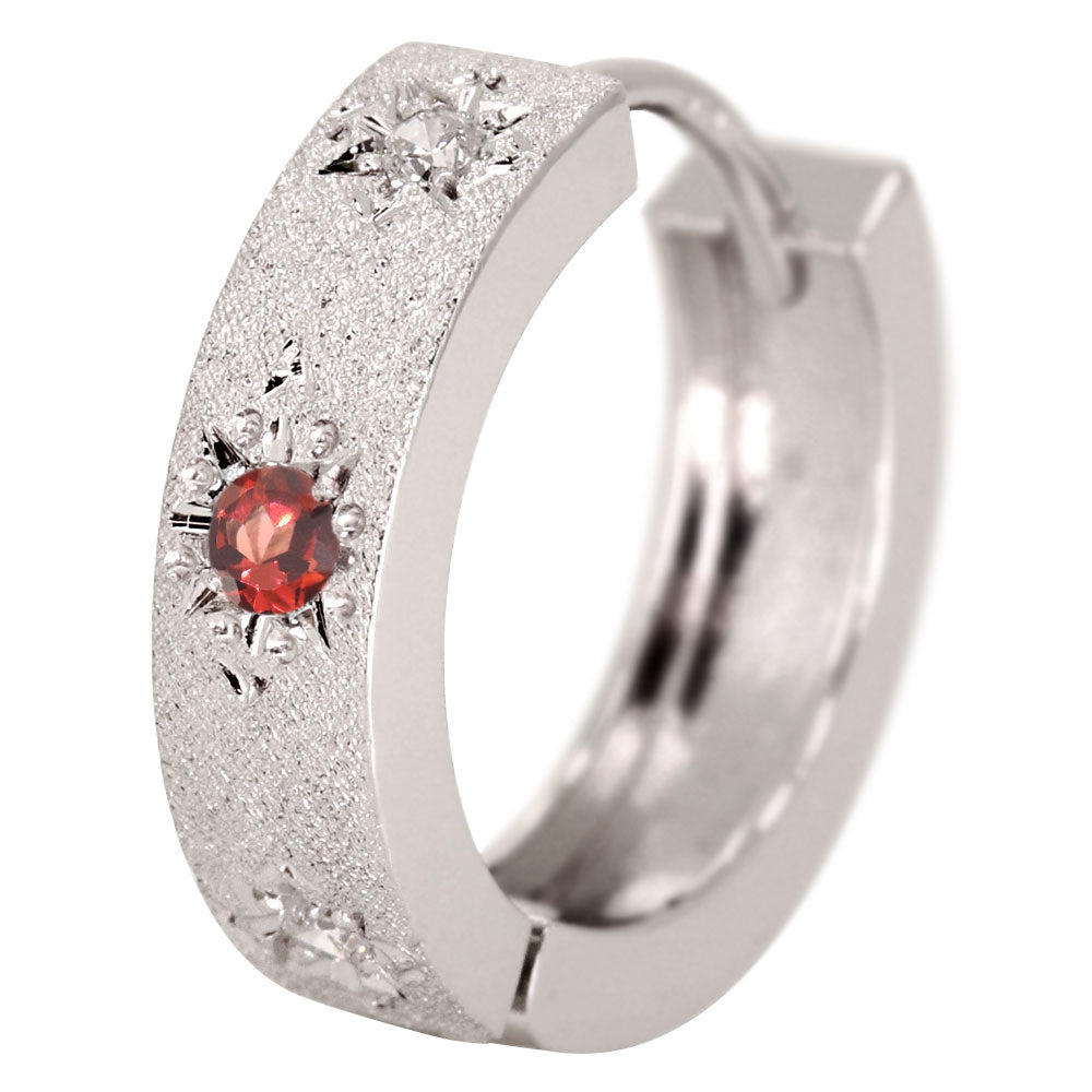 誕生石12石を使用した、メンズフープピアスです。ハワイアンジュエリーとは一味違う洋彫りジュエリー。職人が一つ一つ丁寧に仕上げたオリジナルのデザイン。地金と天然石が輝く洗練されたデザインで、男性の魅力が際立つおしゃれアイテムです。ペアピアスとしてお揃いにしてもおしゃれな商品です。