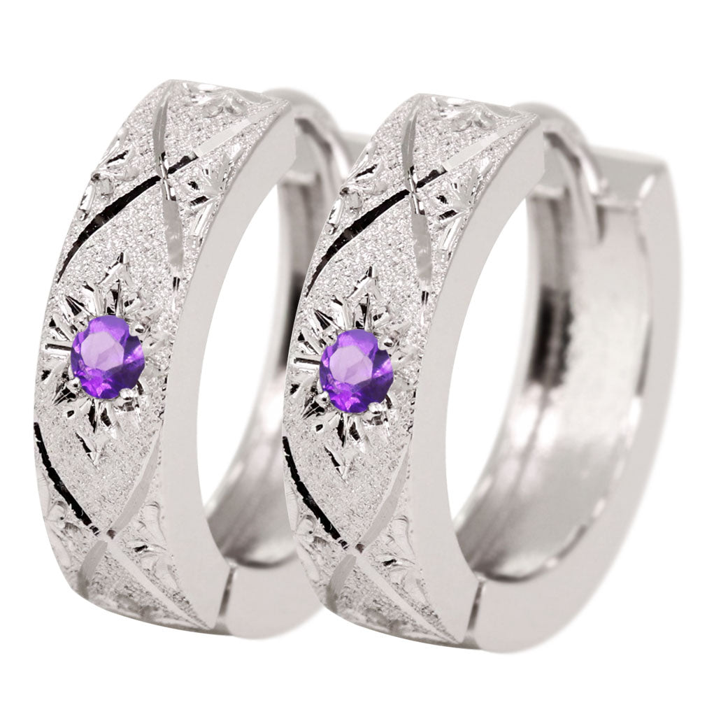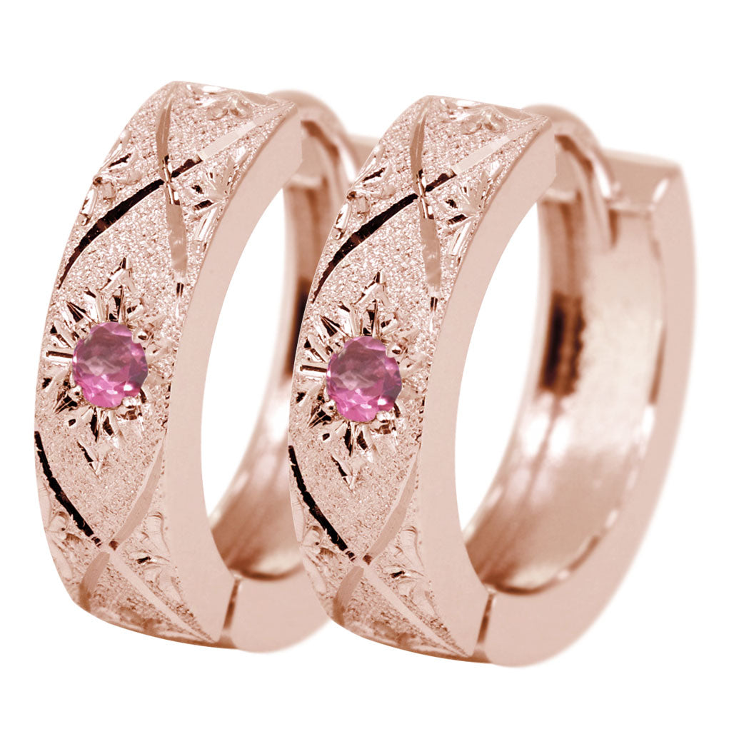 ピアス レディース 中折れ式 誕生石 選べる 天然石 洋彫り ピアス 両耳 フープピアス 彫り 10金 18金 プラチナ シルバー