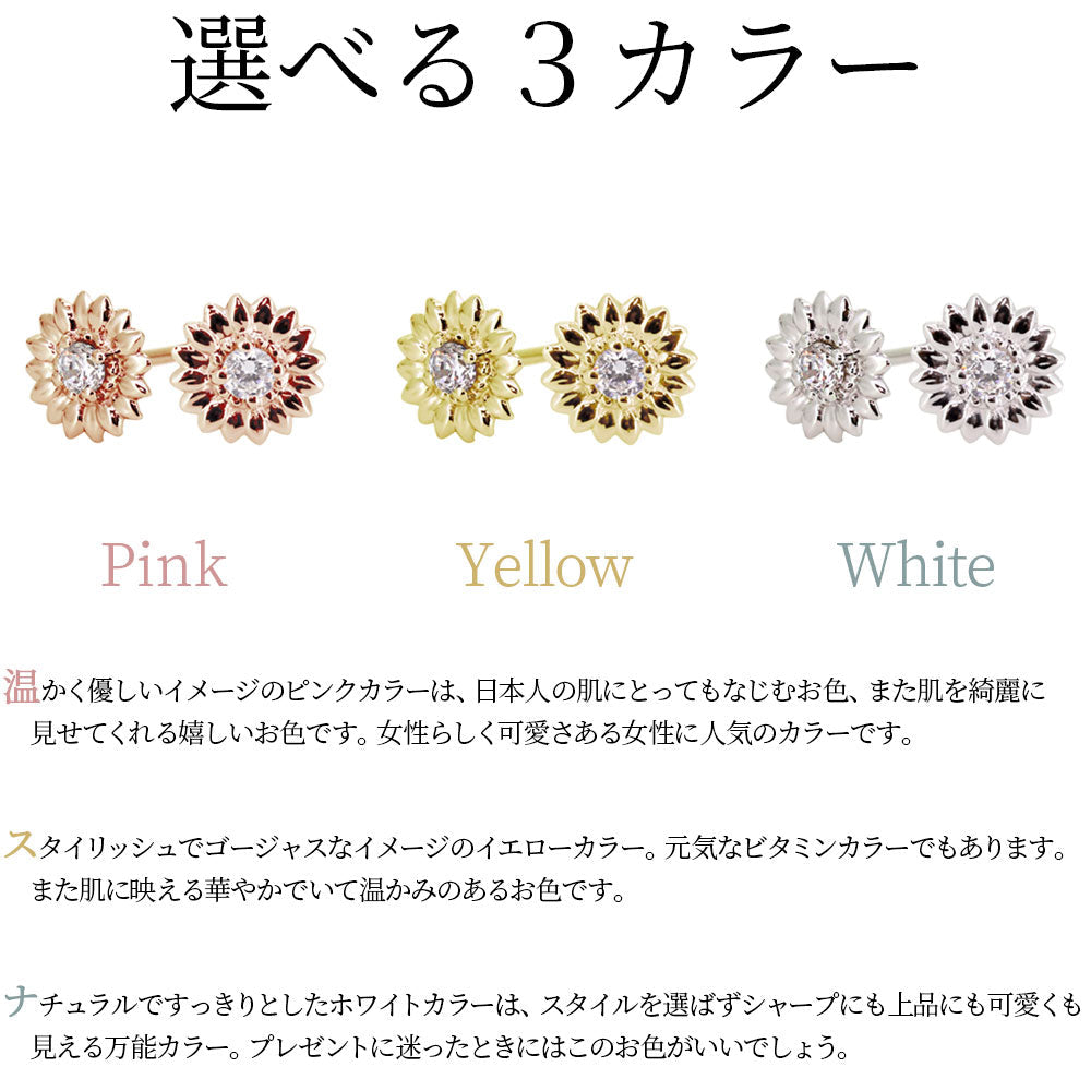 ピアス レディース スタッドピアス ひまわり himawari 花 ヒマワリ 向日葵 選べる誕生石 10k 18k pt900