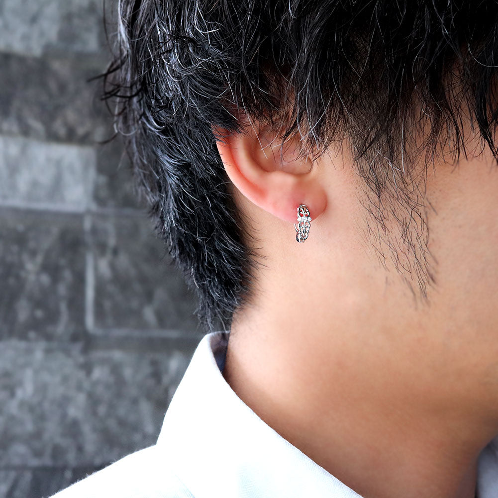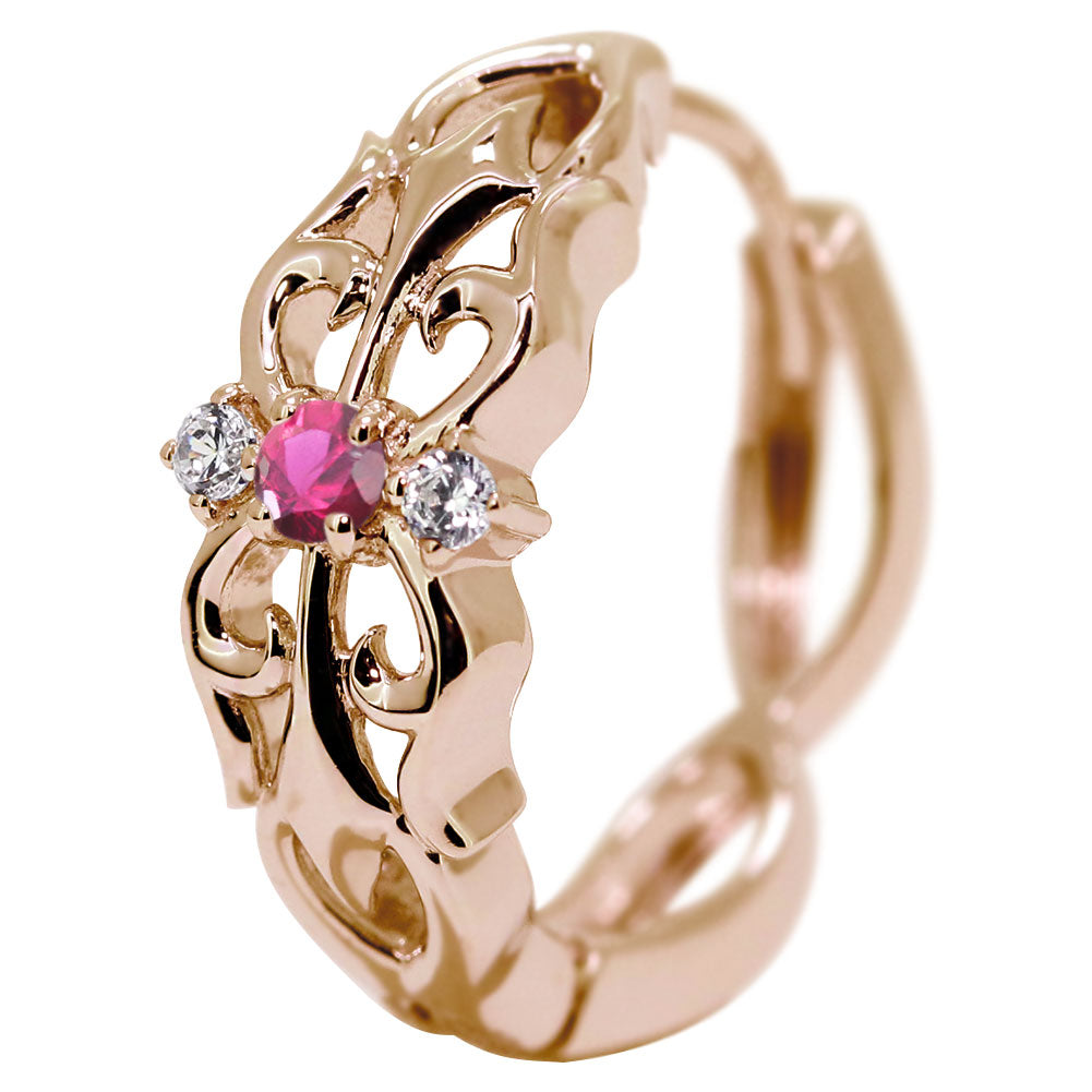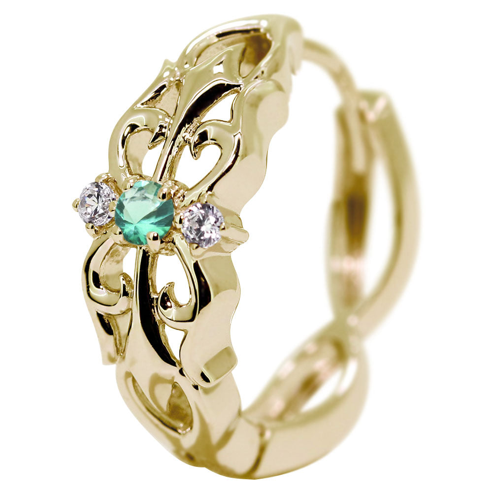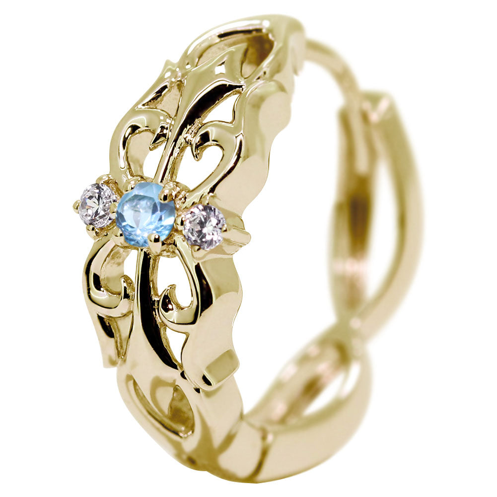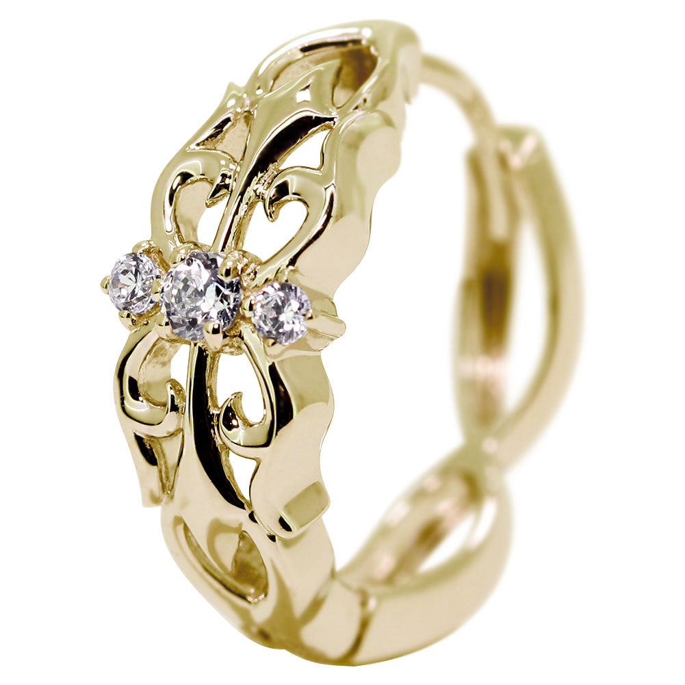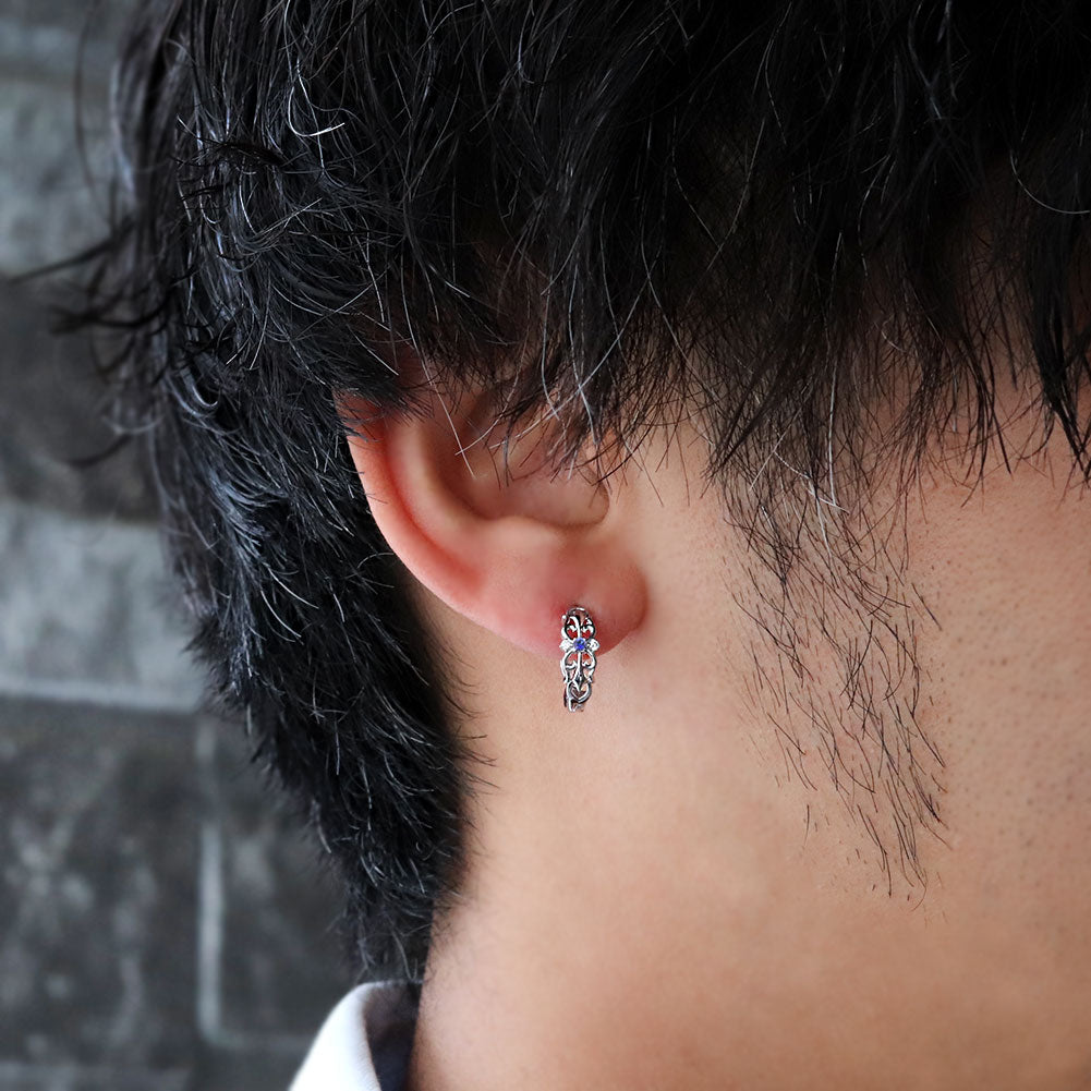 フープピアス メンズ ピアス 十字架 中折れ式 10金 18金 プラチナ シルバー 片耳用 選べる誕生石 Hoop Pierce Croee 天然石 透かし クロス