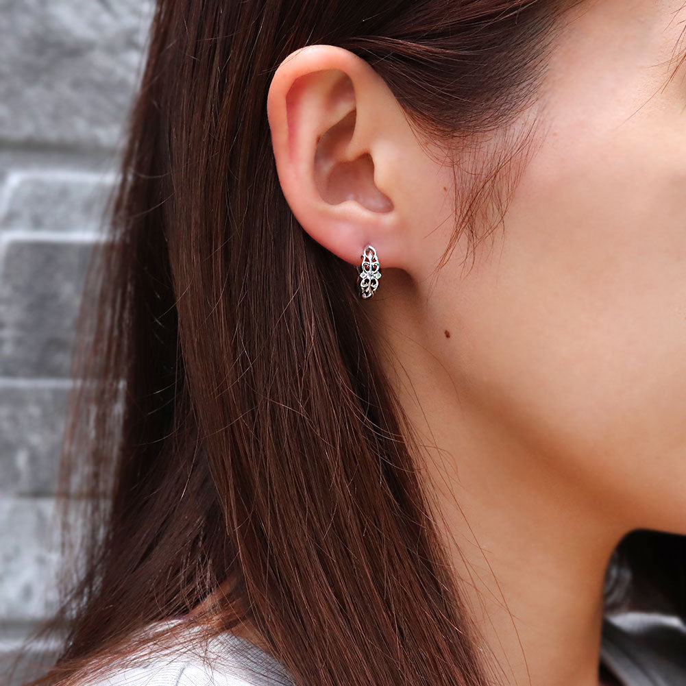 誕生石12石を使用した、クロス(十字架)モチーフのフープピアスです。細部にまでこだわった透かしデザインで、存在感とおしゃれさを兼ね備えたアイテムです。ご自分へのご褒美や、大切な人への贈り物、お揃いにしてもおしゃれな商品です。