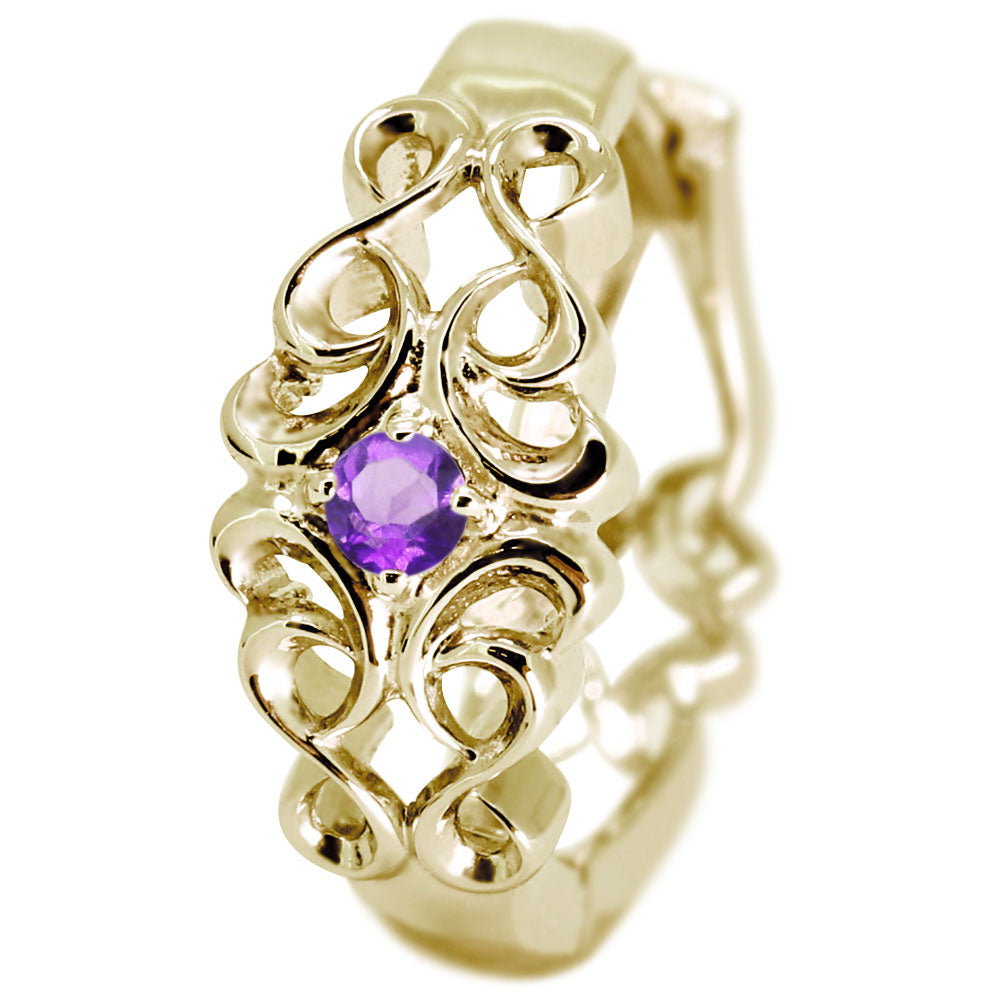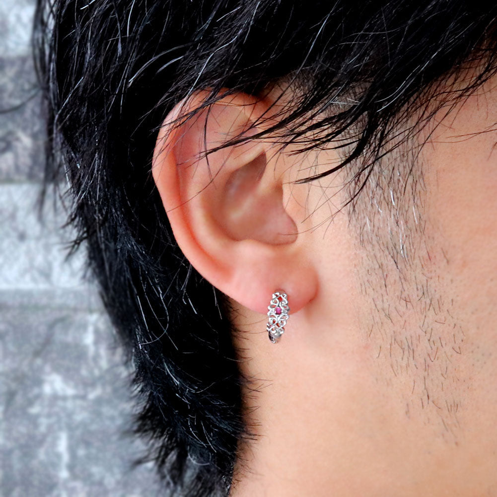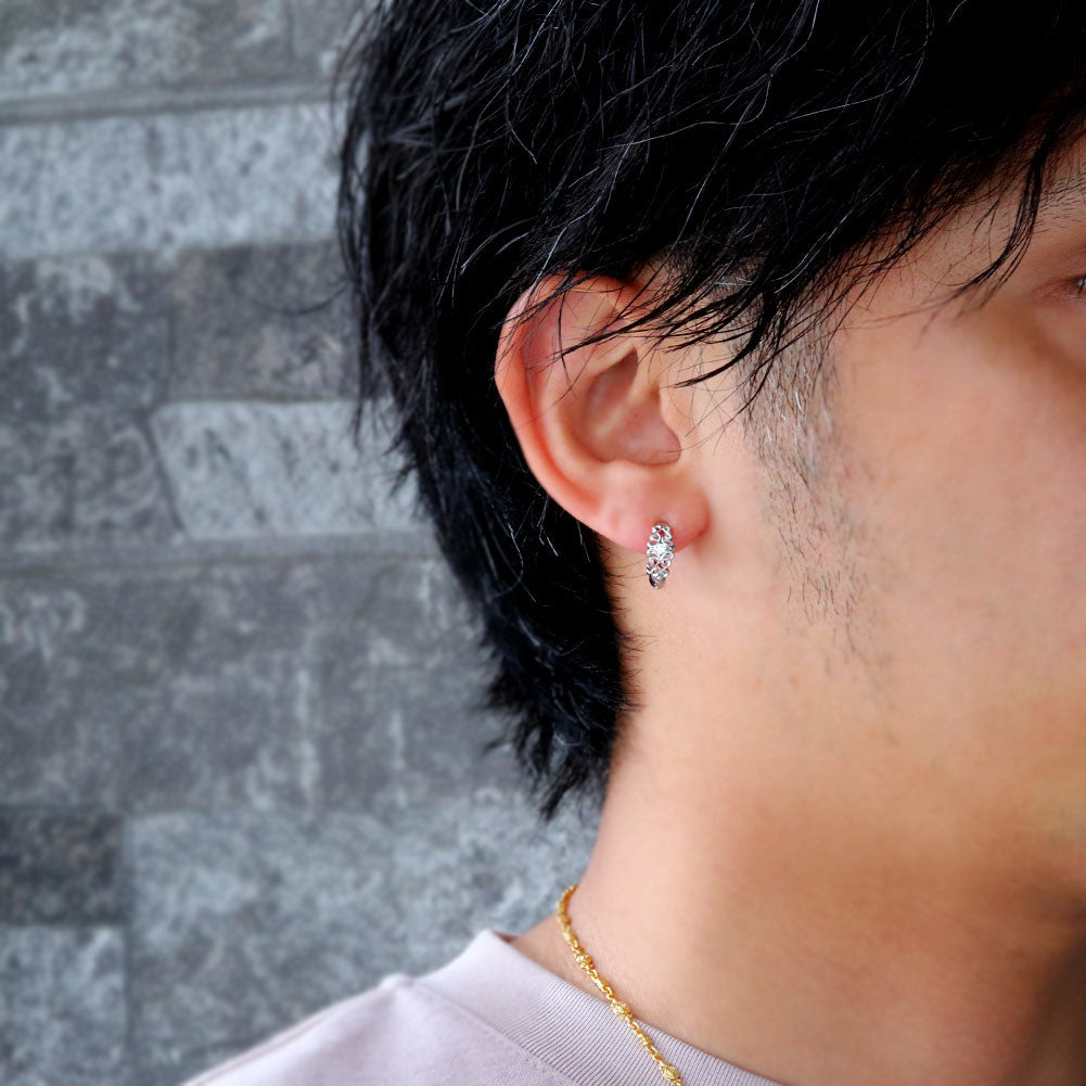 メンズ フープピアス 十字架 唐草 選べる誕生石 10金 18金 プラチナ シルバー 片耳用 天然石 hoop pierce croee arabesque 中折れ式 クロス アラベスク