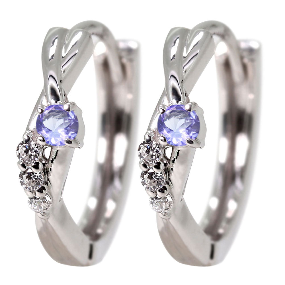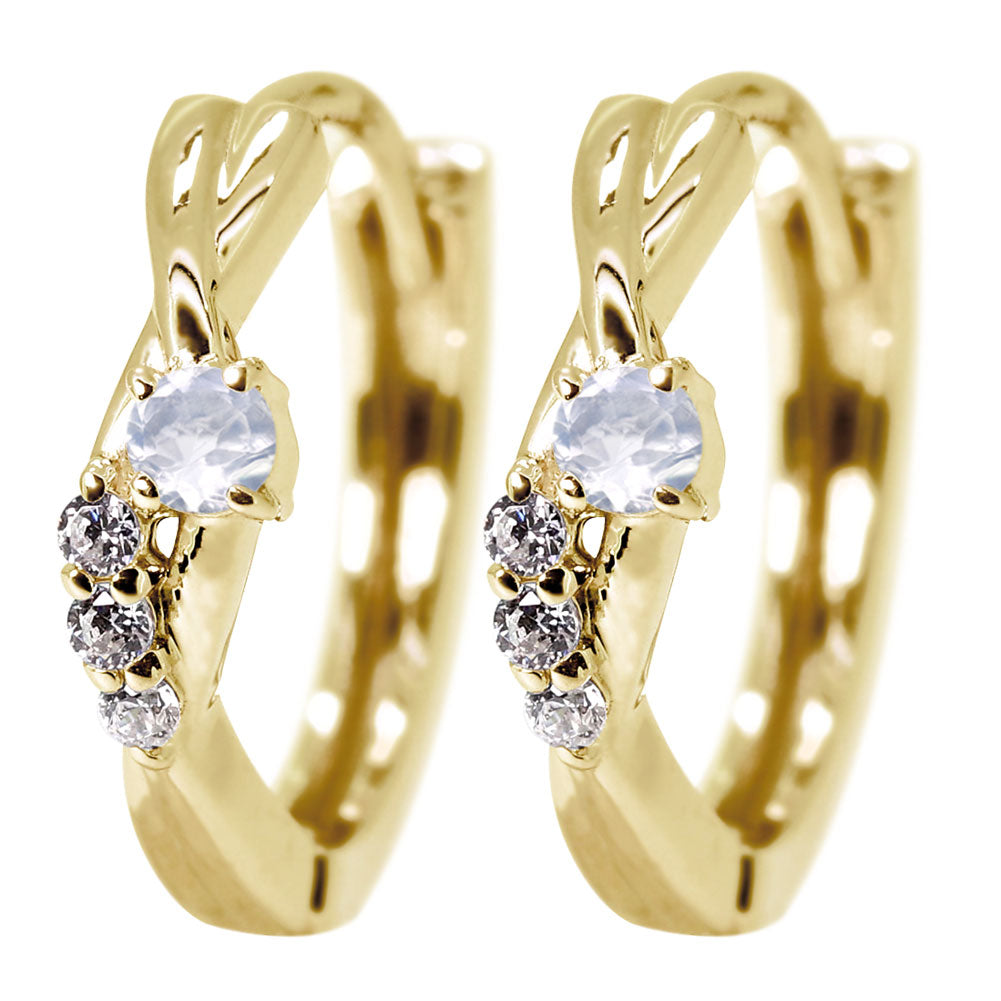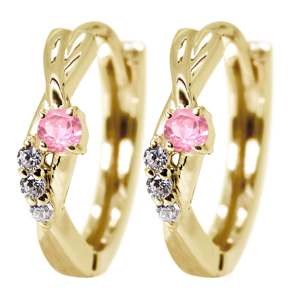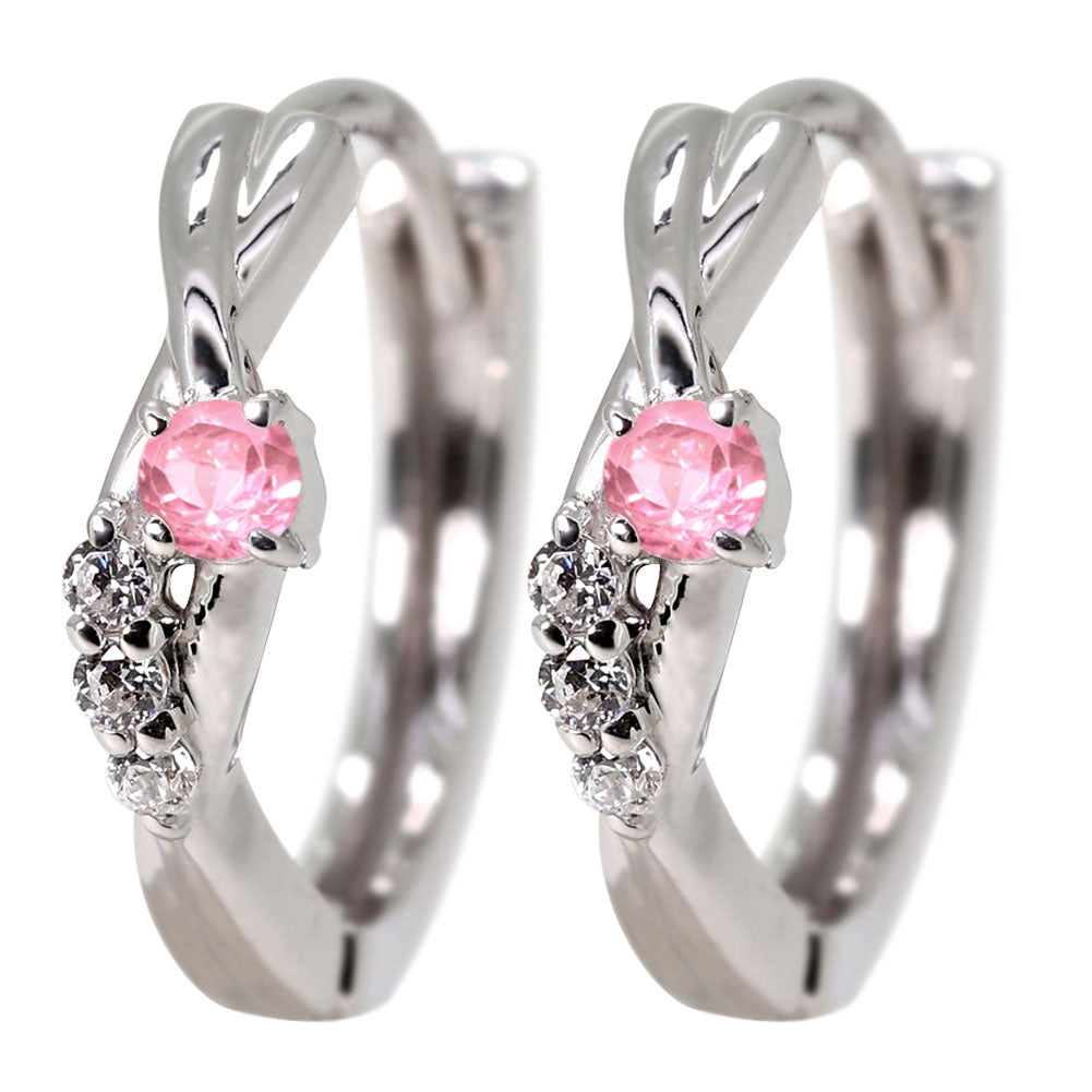 中折れ式 フープピアス レディース クロスライン 選べる誕生石 天然石 交差 X 両耳 Ladies Hoop Pierce Croee 10金 18金 プラチナ シルバー