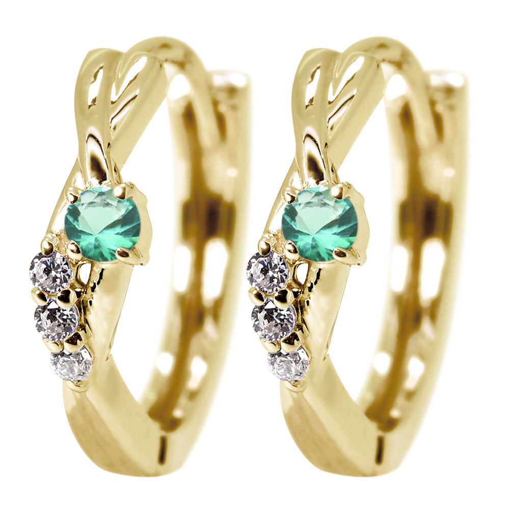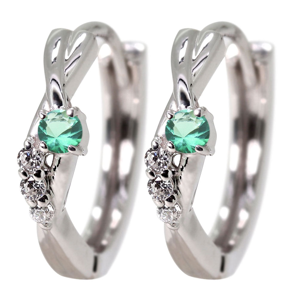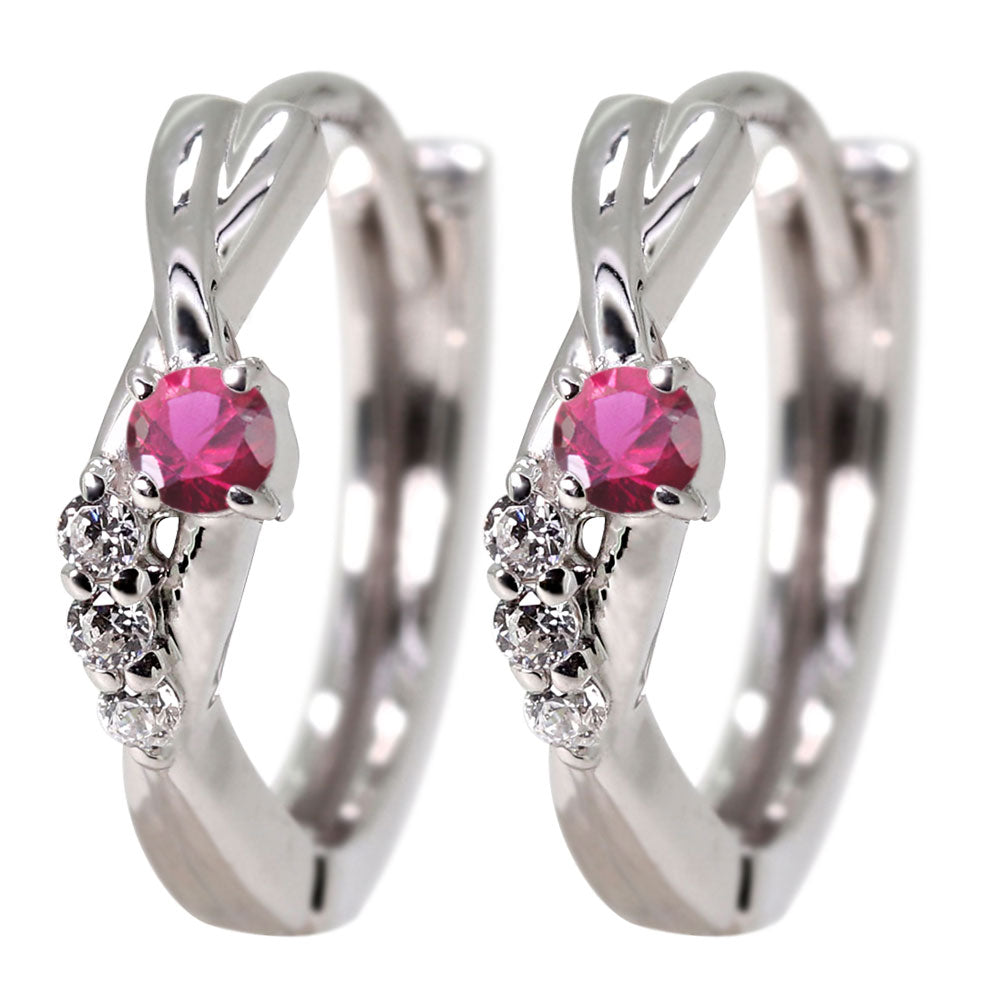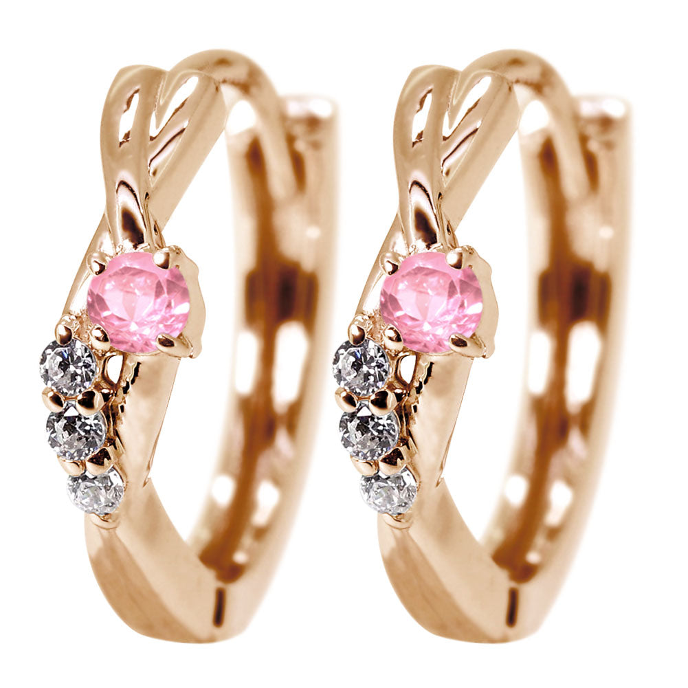 中折れ式 フープピアス レディース クロスライン 選べる誕生石 天然石 交差 X 両耳 Ladies Hoop Pierce Croee 10金 18金 プラチナ シルバー