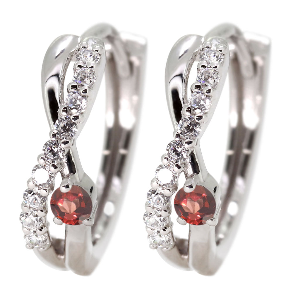 インフィニティ クロスライン レディース フープピアス 選べる誕生石 天然石 両耳 k10 k18 pt900 sv925 中折れ式 ラインストーン Hoop Pierce Infinite