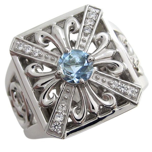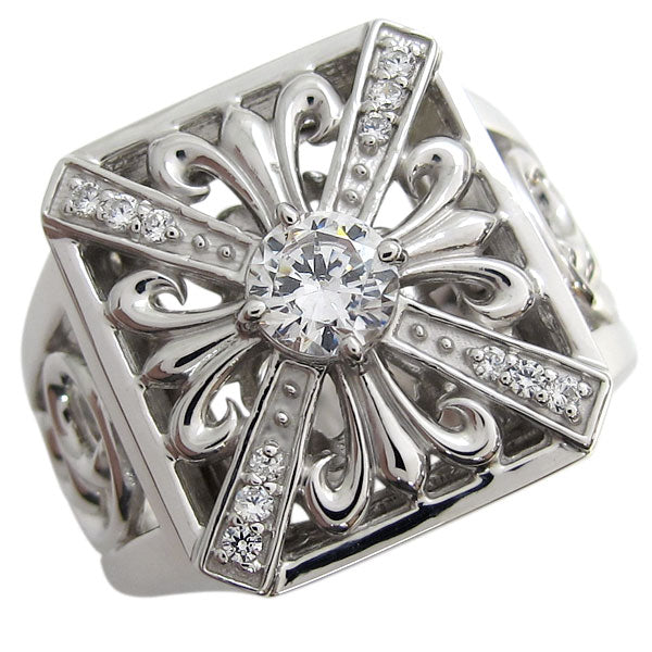 クロスリング シルバー 太め 百合の紋章 メンズ 唐草 選べる 誕生石 極太 指輪 ダイヤモンド 十字架 天然石 10金 18金 プラチナ 幅広 ダイヤモンド (品番 mr-0210)