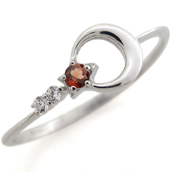 誕生石 星 月 モチーフ 18k ムーン スター レディースリング 指輪 10金 18金 プラチナ ピンキーリング 選べる誕生石 天然石 三日月 (品番 mr-0212)