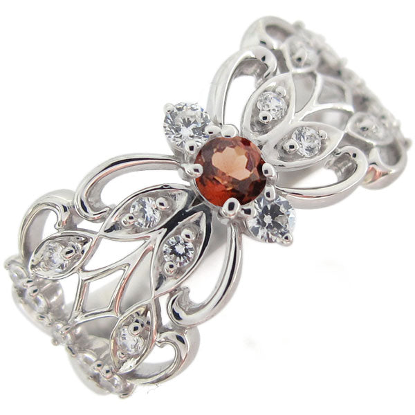 誕生石14石を一粒使用した、バタフライ(蝶)&アラベスク(唐草)モチーフアンティークデザインリング(指輪)です。優美な唐草模様が女性の指元をエレガントに引き立てる、アンティークな雰囲気のリングです。
