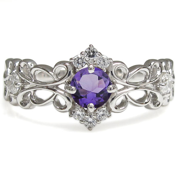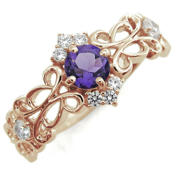 唐草 レディースリング アンティーク 指輪 選べる誕生石 10k 18k pt900 アラベスクリング 天然石 ティアラ ダイヤモンド (品番 mr-0214)