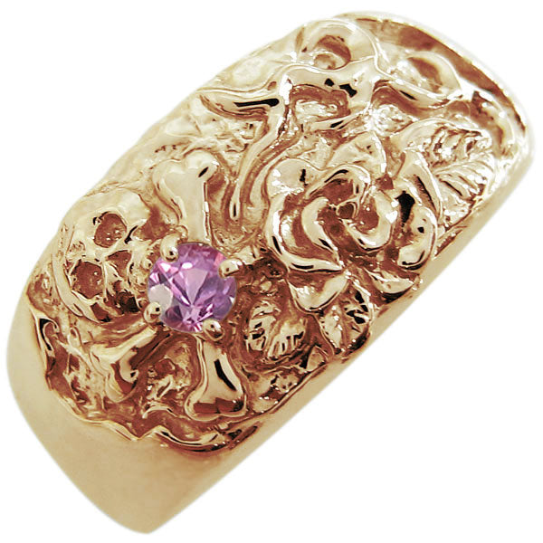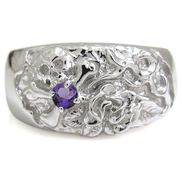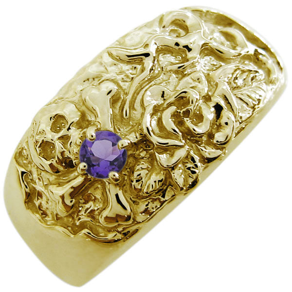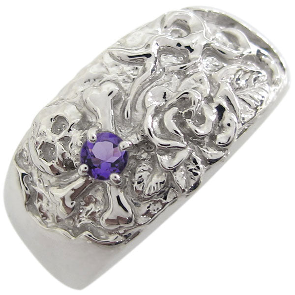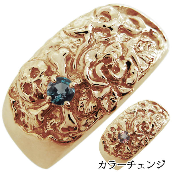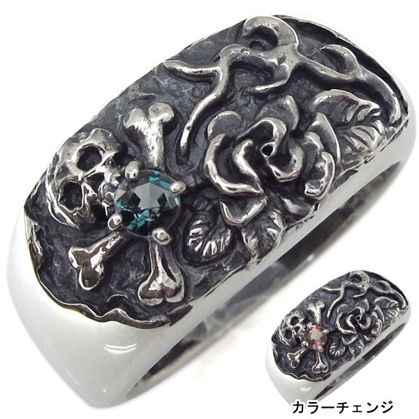 誕生石13石・希少石アレキサンドライトを一粒使用した、スカル(骸骨)&バラをモチーフしたメンズリング(指輪)です。ドクロとバラをモチーフにした今までにない雰囲気のスカルリングです。美しいディテールのリングが彼方の指元を、さりげなくハードに演出してくれます。
