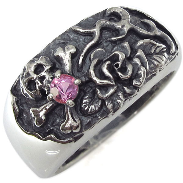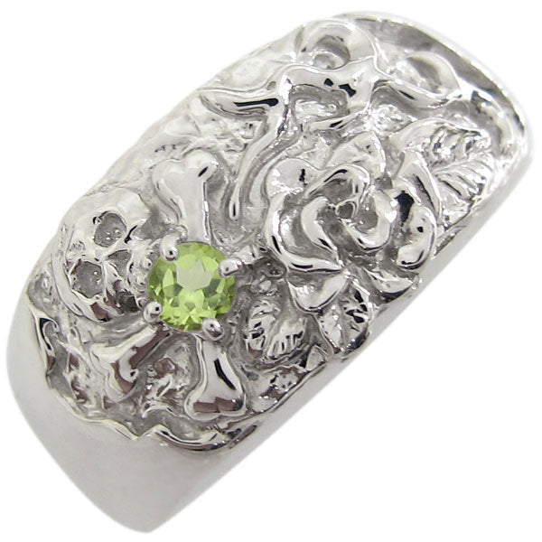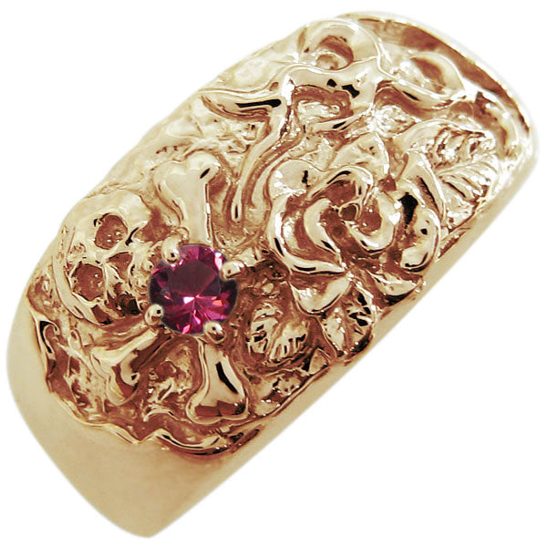 ドクロ リング メンズ シルバー 指輪 バラ 10k 18k pt900 sv925 誕生石 スカル 薔薇 太め メンズリング 天然石 選べる誕生石 骸骨 (品番 mr-0219)