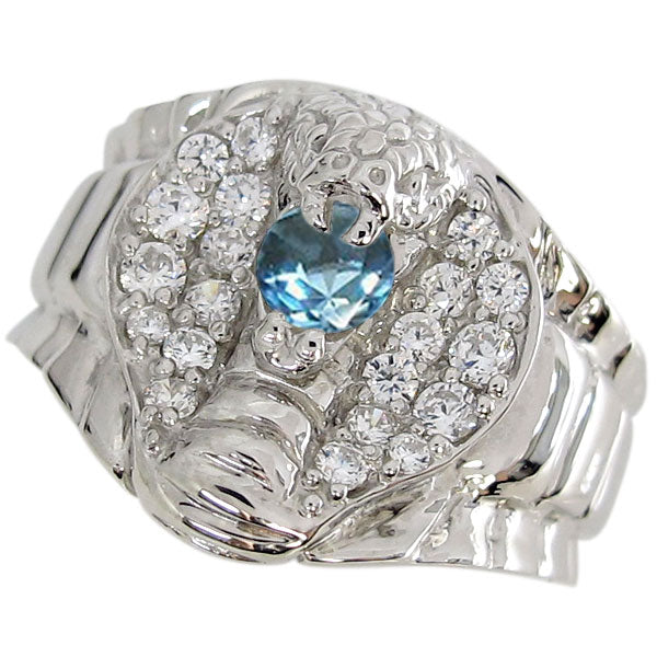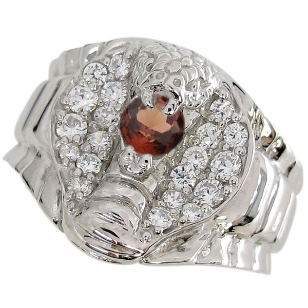 誕生石12石を一粒使用した、スネーク(蛇)モチーフメンズリングです。コブラのフード部分にダイヤモンドをゴージャスに敷き詰め、天然石を一石くわえたコブラモチーフメンズリングです。招財のシンボルとして有名な蛇。中でもコブラはその猛毒で悪い気を寄せ付けない、魔よけの効果もあるいわれています。