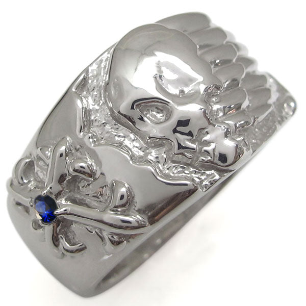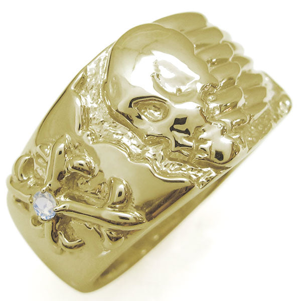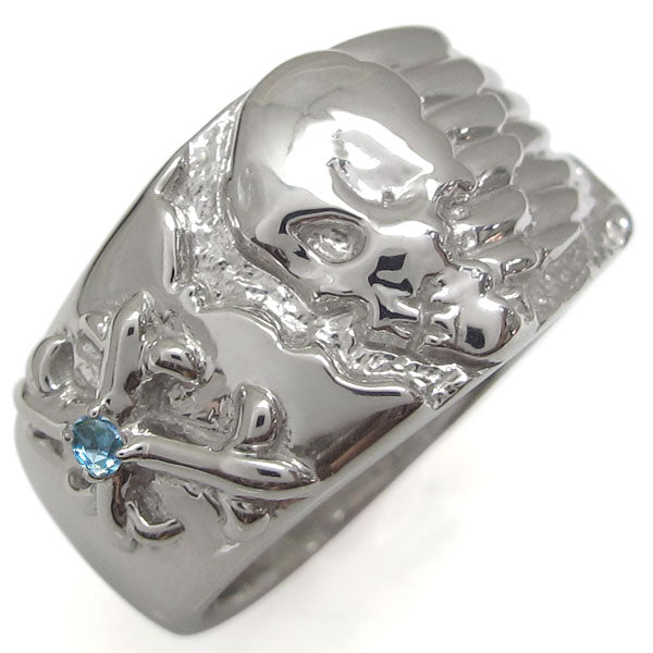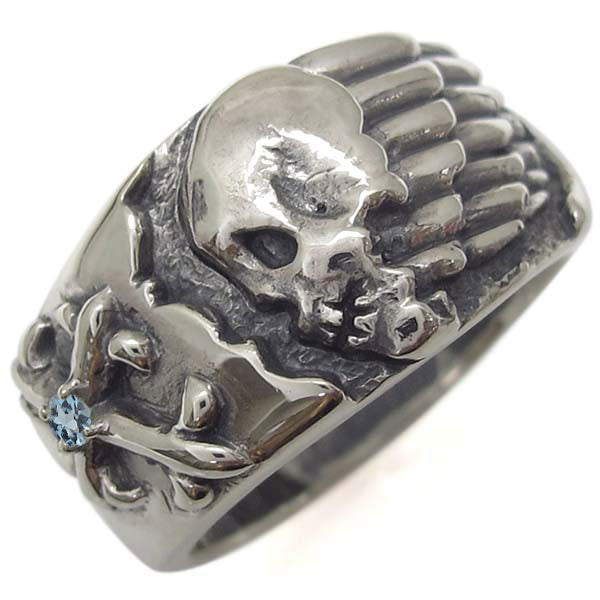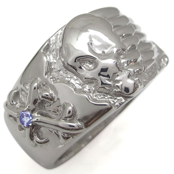 誕生石12石を一粒使用した、スカル(骸骨)&クロス(十字架)モチーフメンズリング(指輪)です。ドクロ(髑髏)とクロスをモチーフにした重厚感たっぷりのスカルリングです。細かいディティールに至るまで精巧に作られたリングが、さりげなくハードに演出してくれます。