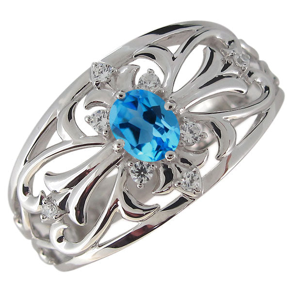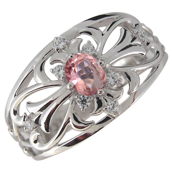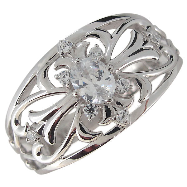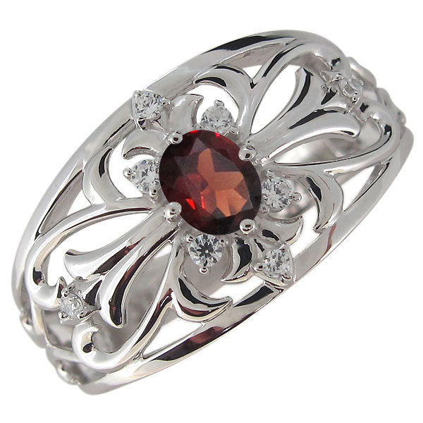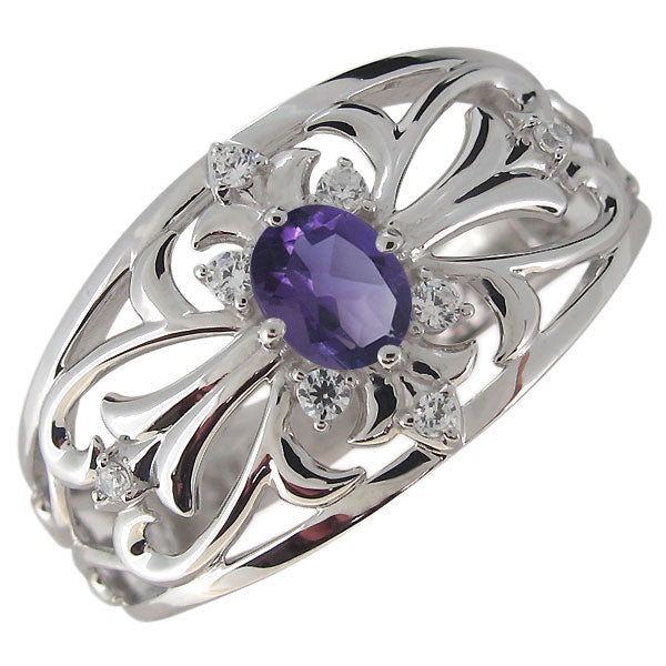 クロスリング メンズ 18金 オーバル 指輪 ゴージャス 十字架 10金 プラチナ シルバー メンズリング 透かし 選べる誕生石 (品番 mr-0335)
