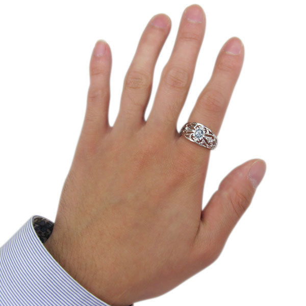 誕生石9石・キュービックジルコニアを使用した、クロス(十字架)モチーフメンズリング(指輪)です。美洗練されたデザインに天然石が煌めく、大人の魅力が際立つメンズリングに仕上がっています。