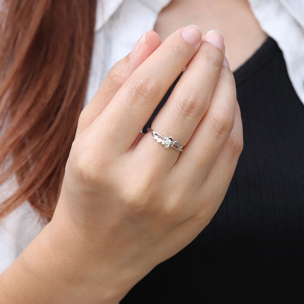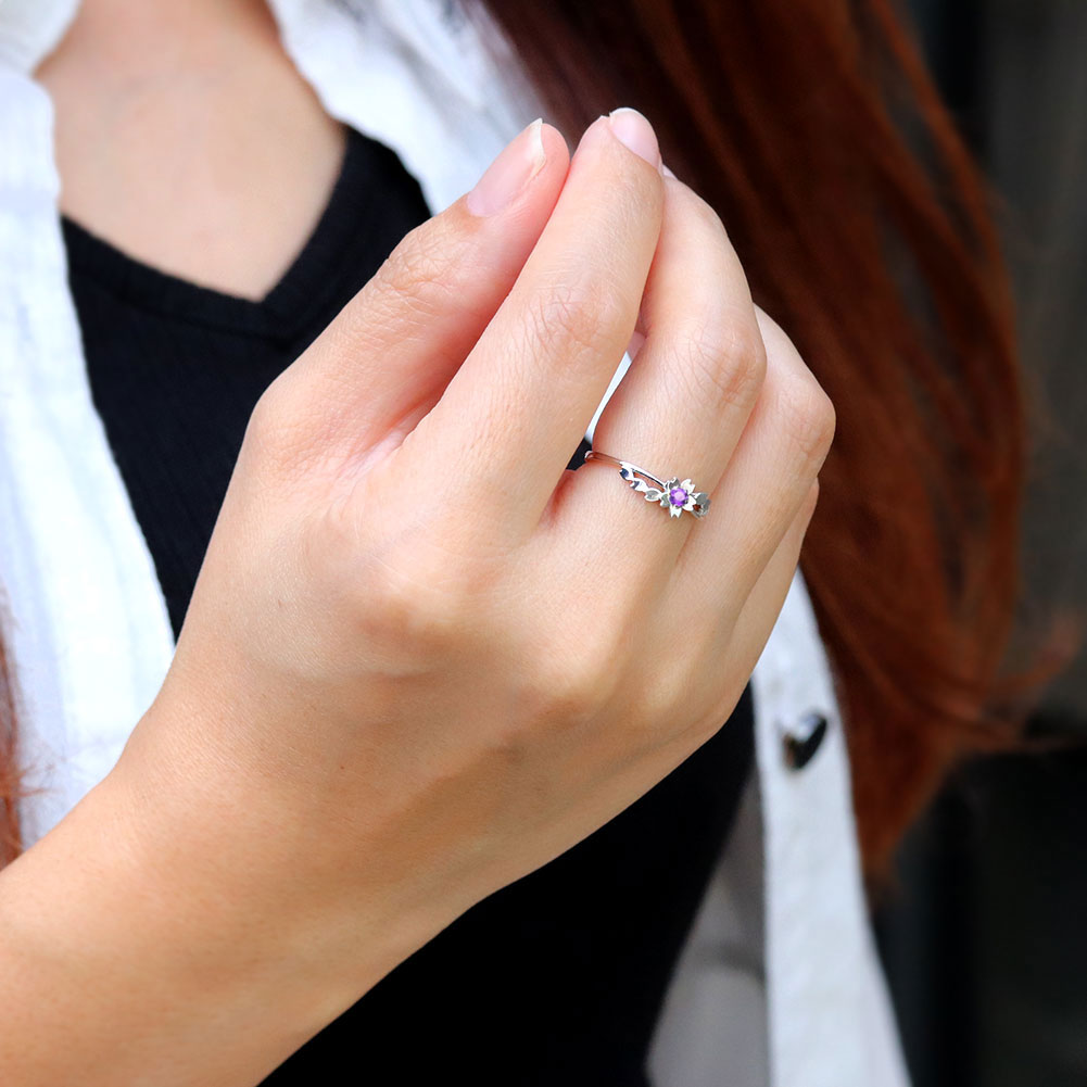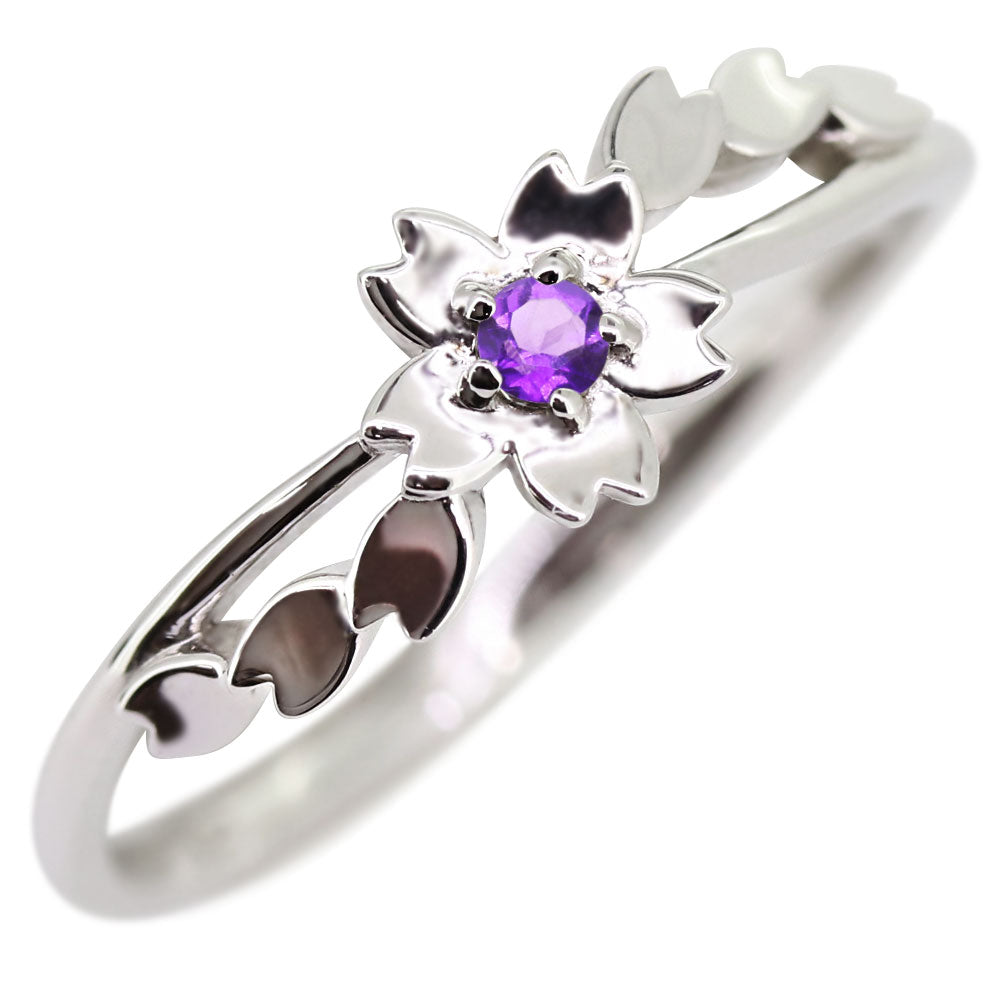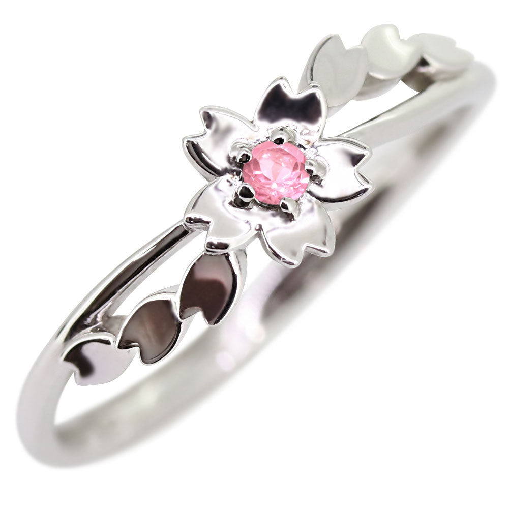 誕生石12石・希少石2石を一粒使用した、桜(フラワー)モチーフリング(指輪)です。見る人を魅了する桜の美しさ。愛らしい桜モチーフが、指先を華やかに演出します。