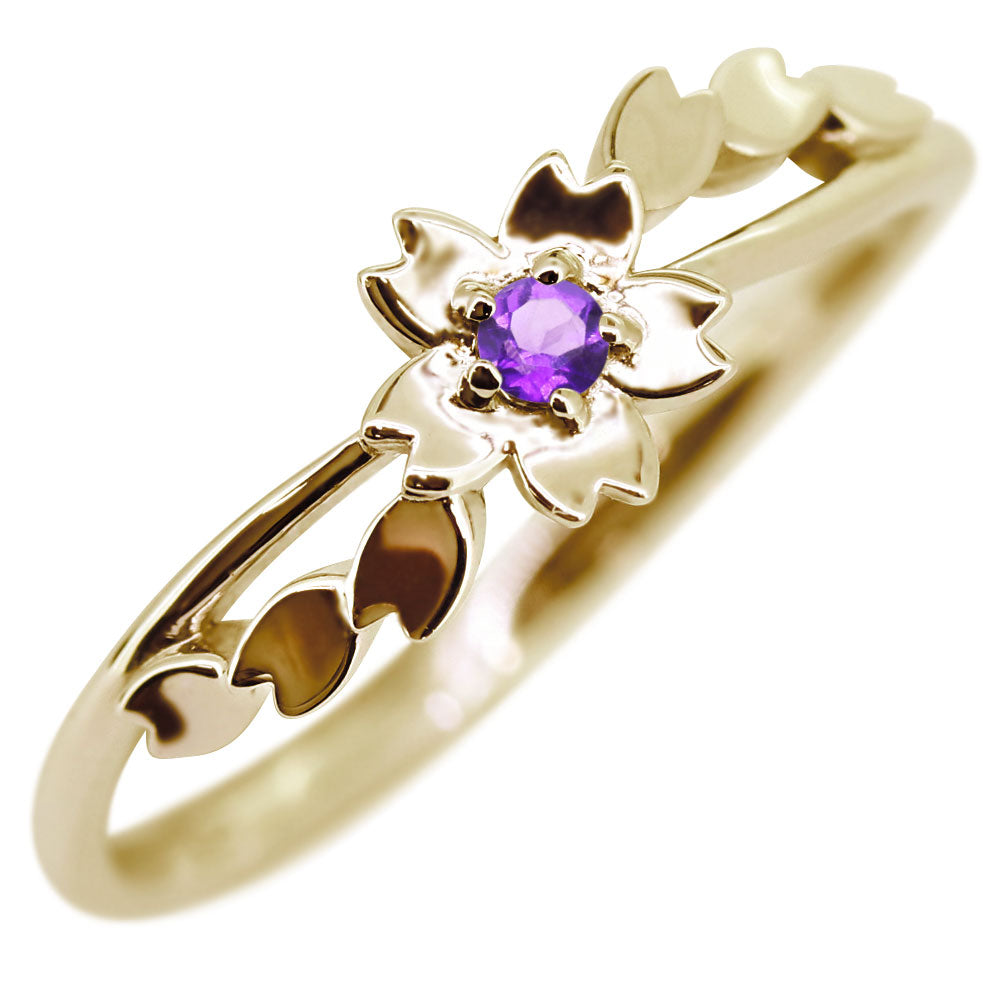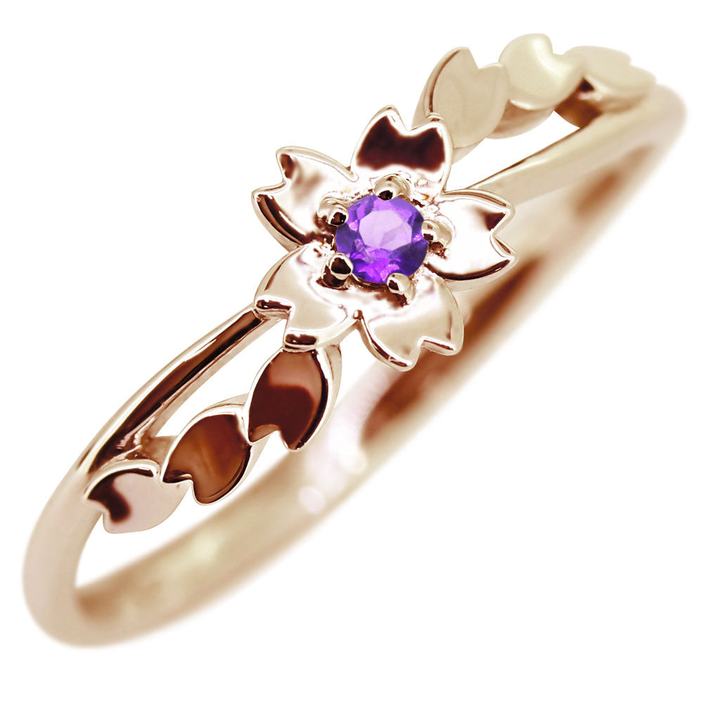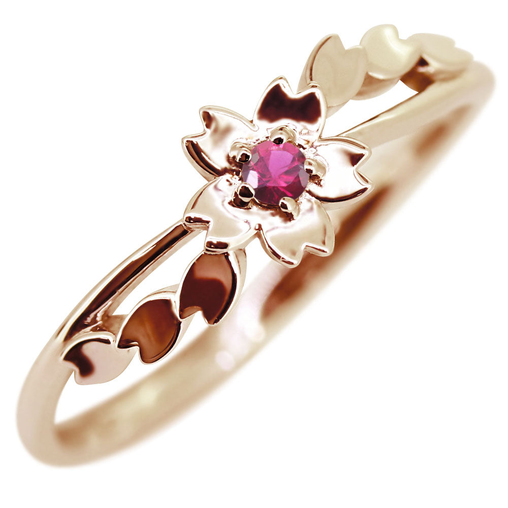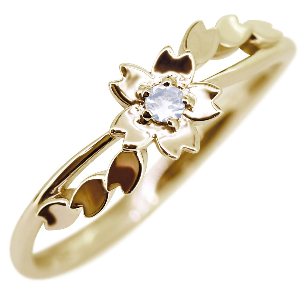 指輪 桜 リング K10 K18 Pt900 SV925 誕生石 選べる レディース サクラ 花 フラワー 母の日 さくら プレゼント 天然石