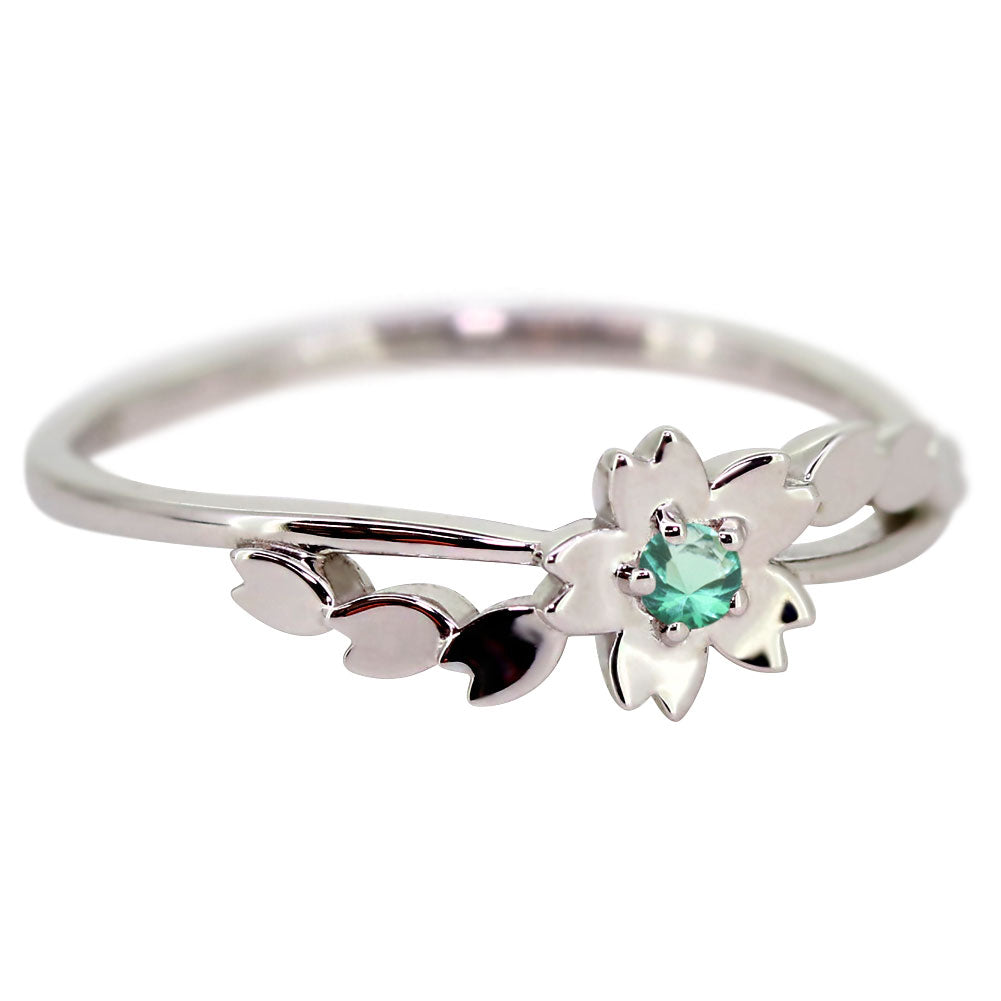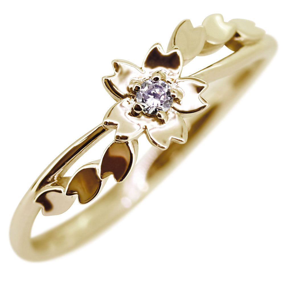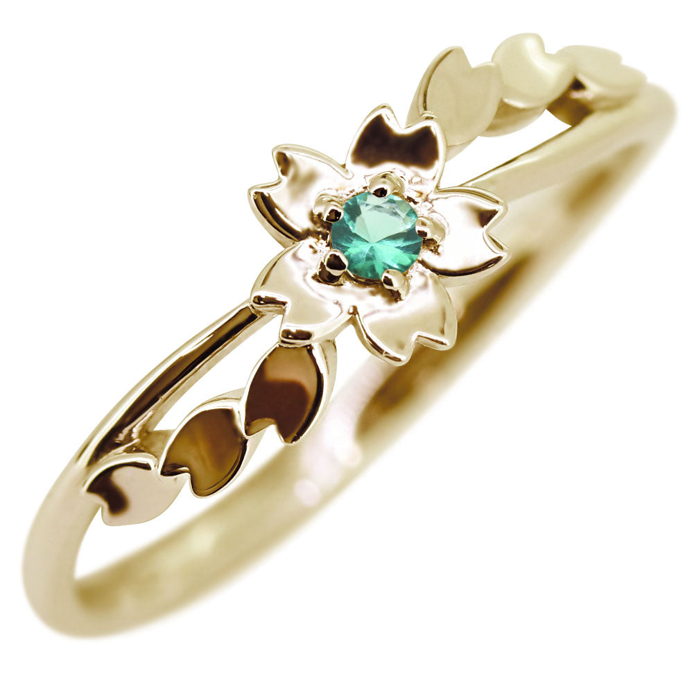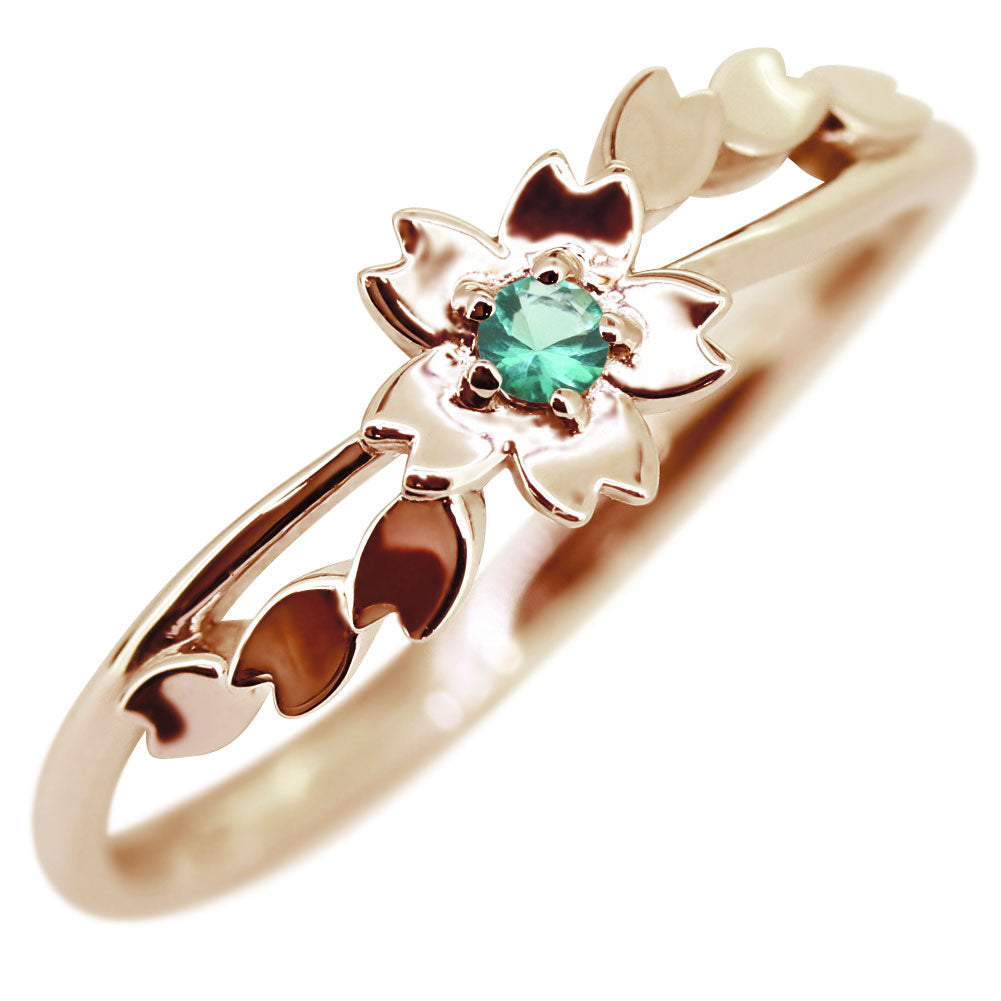 指輪 桜 リング K10 K18 Pt900 SV925 誕生石 選べる レディース サクラ 花 フラワー 母の日 さくら プレゼント 天然石