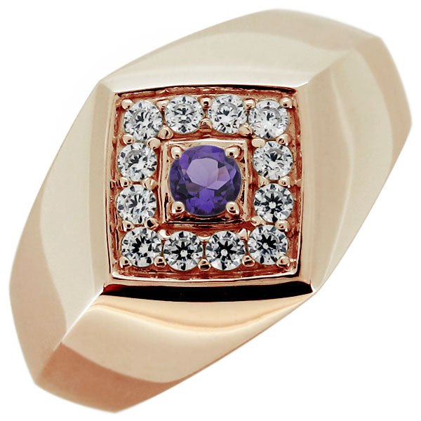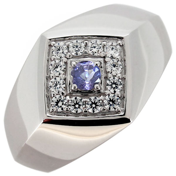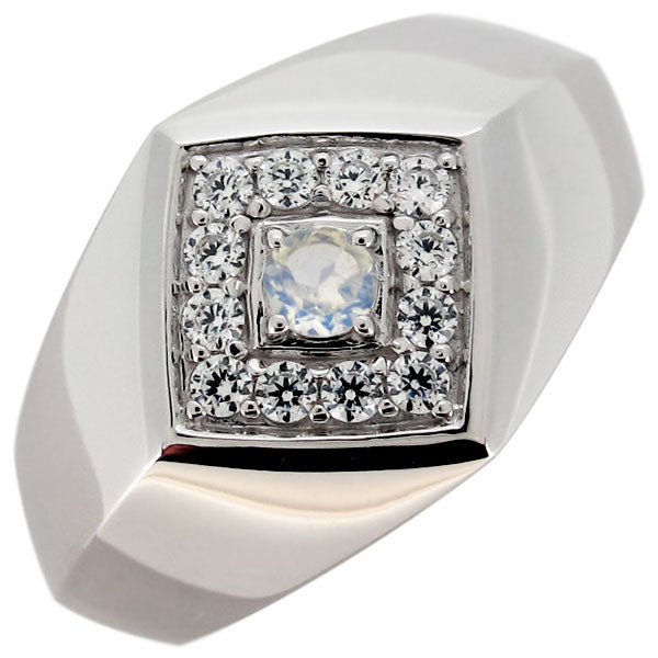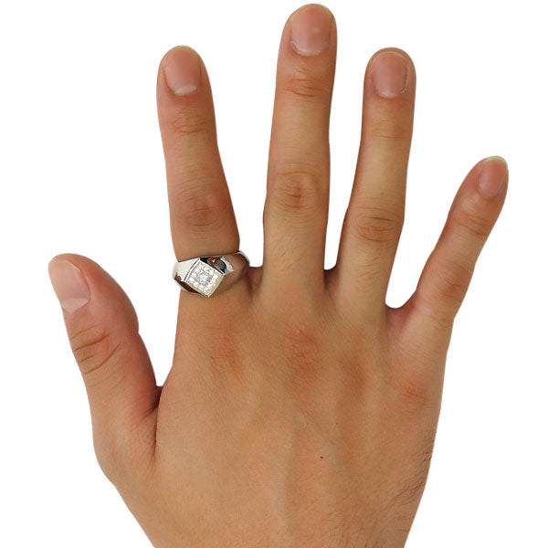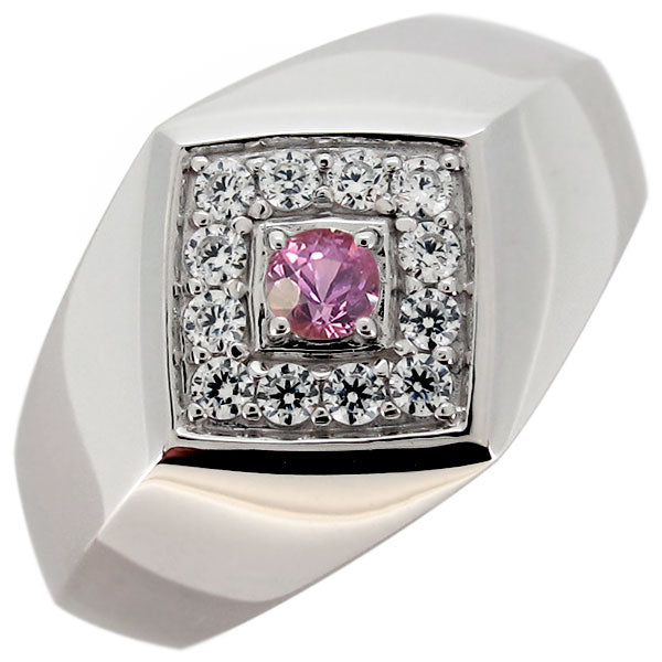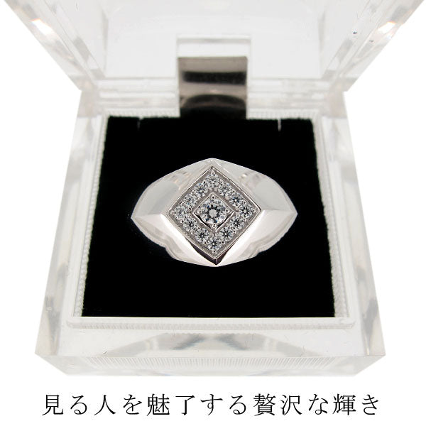 印台リング メンズ スクエア 選べる 誕生石 プラチナ 指輪 ひし形 パヴェ ダイヤモンド 天然石 10k 18k pt900 sv925 (品番 mr-0349)